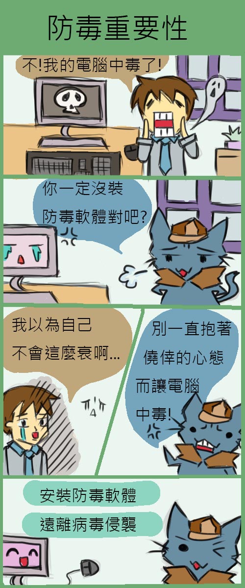 資安貓提醒您: 安裝防毒軟體,病毒遠離你 :D